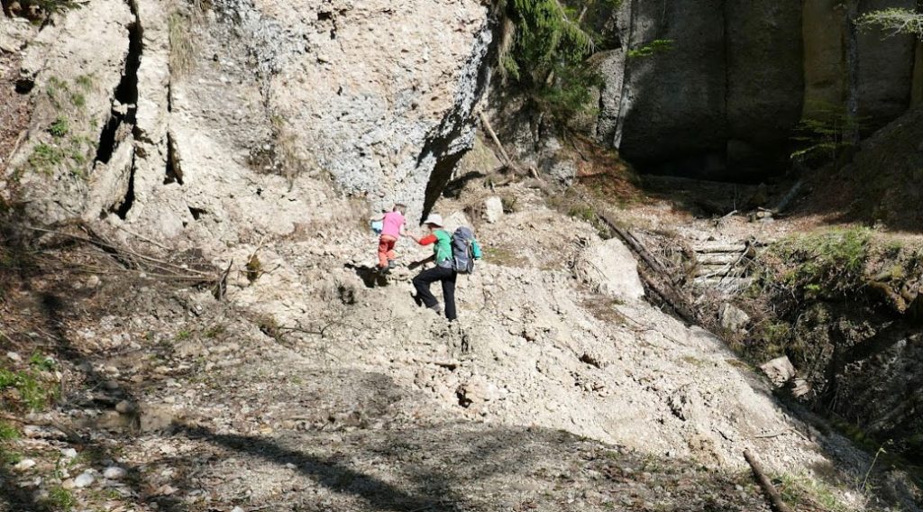 Ein guter Anhaltspunkt für den Grad des Abenteuers, der einen auf dem selbst gefundenen Weg erwartet, ist die SAC-Wanderskala. Diese reicht von T1 (sehr einfach und sicher) bis T6 (nur Bergakrobaten zu empfehlen). Für die meisten Familien mit kleineren Kindern dürften sich wohl T1 und T2 eignen. Wird es etwas schwieriger gilt es, sich vorsichtig an die Herausforderung heranzutasten. Praktischerweise sind viele der Wege und Pfade, wie man sie in den 4umaps findet, in der Karte mit einer T-Markierung versehen. So kann man sich bereits vorab relativ zuverlässig informieren. Sonsten hilft eventuell eine Internetrecherche bei einschlägigen Wanderportalen (s.o., hikr.org). Dabei ist allerdings zu beachten, dass die hier beschriebenen Wanderungen zumeist von ausgebufften Berg-Profis geschildert werden und sich die Beschreibungen auch nicht speziell an Familien richten.